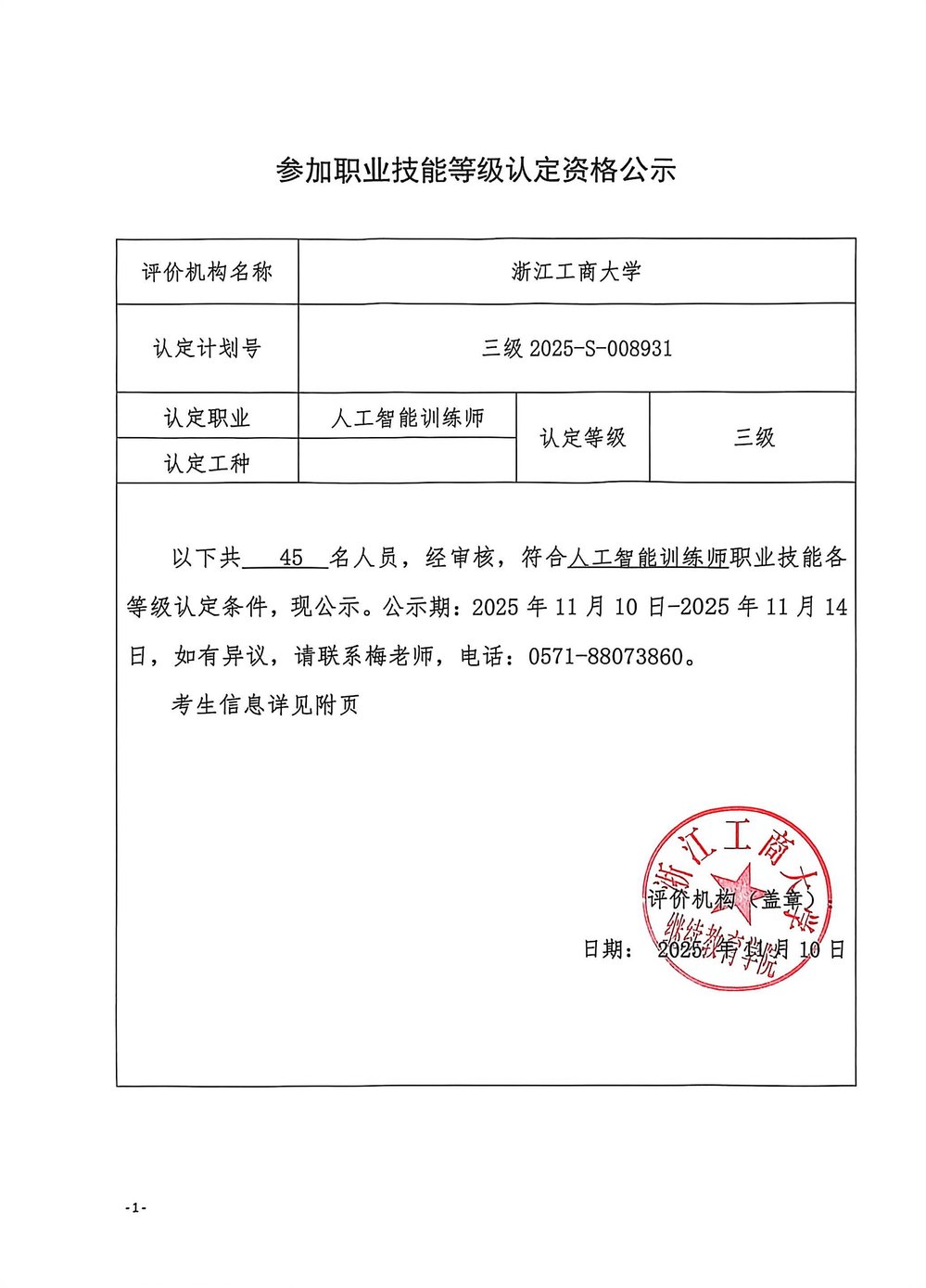 2025年11月参加职业技能等级认定资格公示(人工智能训练师).xls