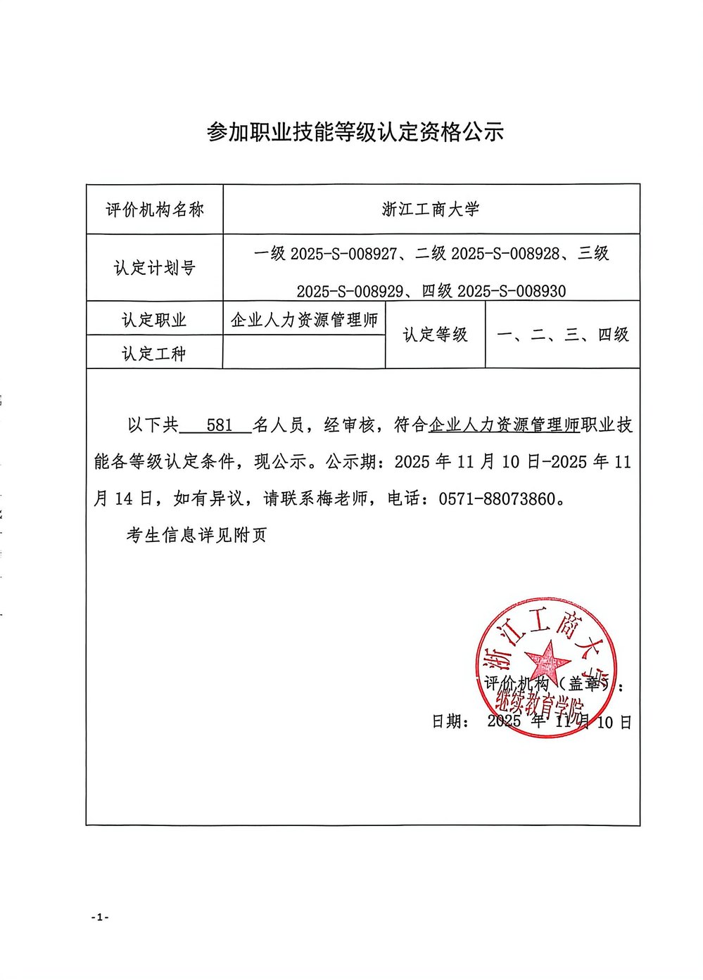 2025年11月参加职业技能等级认定资格公示(企业人力资源管理师).xls