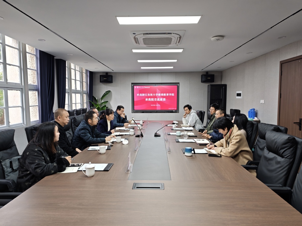 12月3日上午,浙江农林大学继续教育学院党总支书记苏小菱一行来我院座谈交流。党总支书记江辛,副院长张利、何猛及相关部门负责人参加会议。