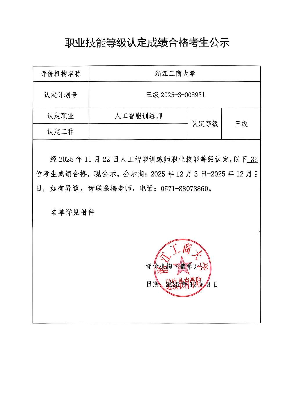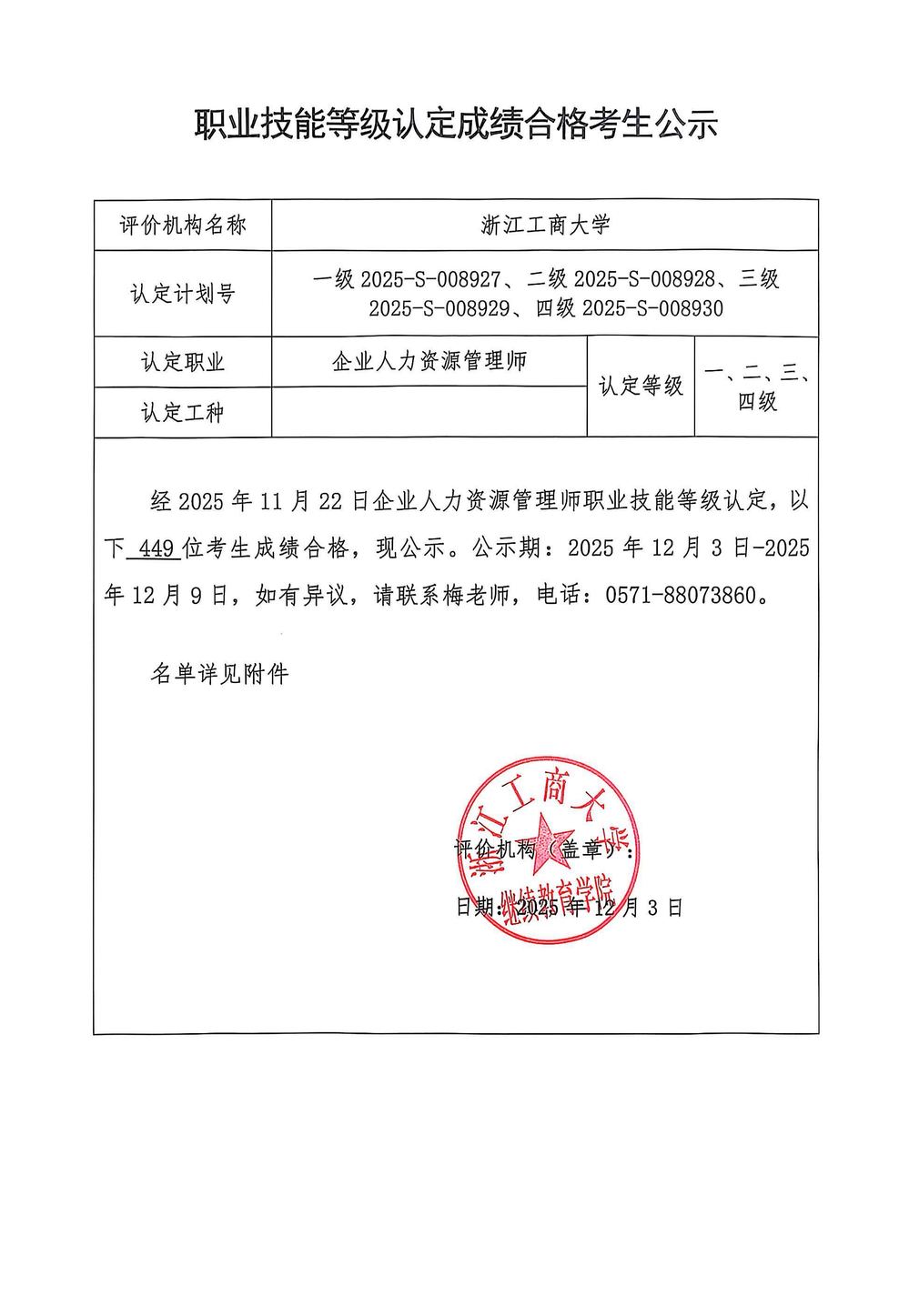 2025年11月职业技能等级认定成绩合格人员公示