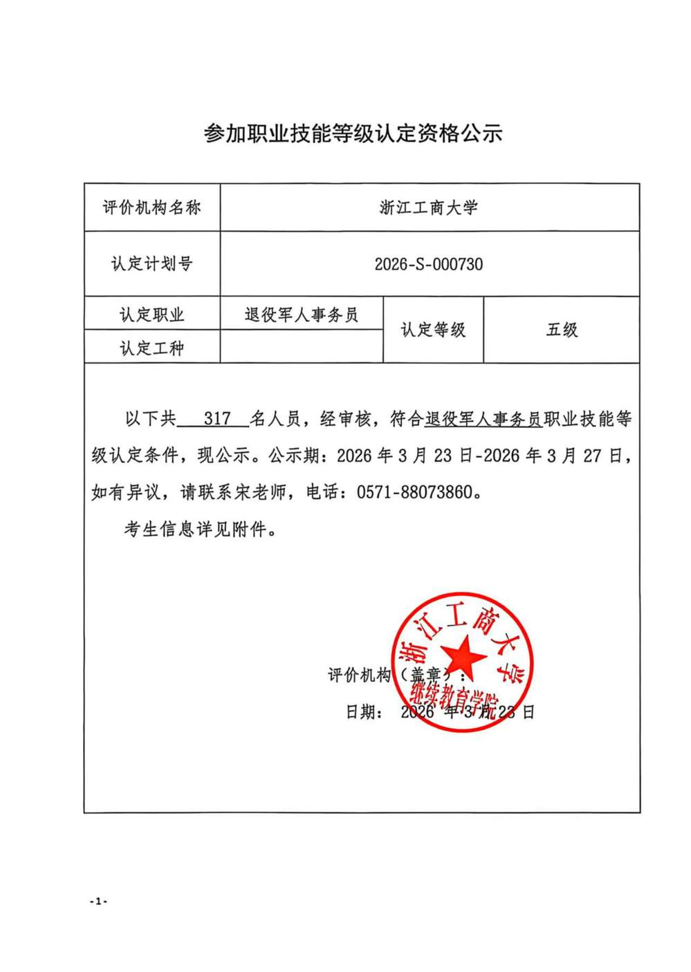 2026年3月嘉兴海宁换证退役军人事务员初级工报名资格公示