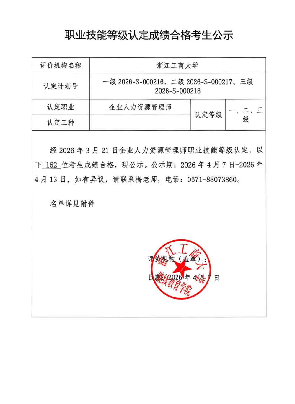 职业技能等级认定成绩合格人员公示(企业人力资源管理师).xls