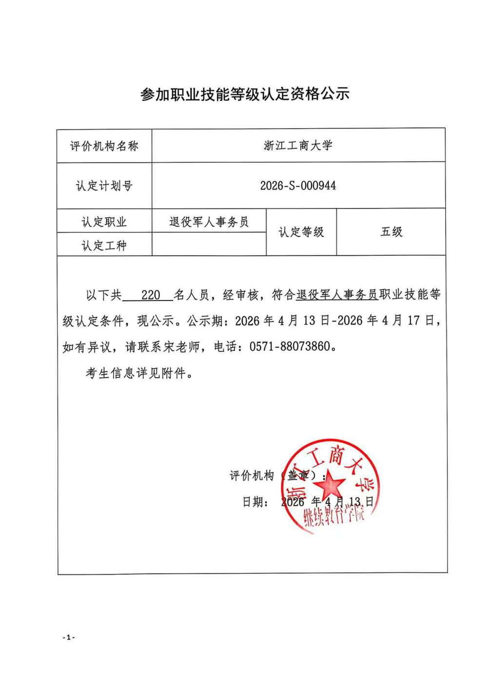 2026年4月越城+滨海、市本级+新昌换证退役军人事务员初级工报名资格公示