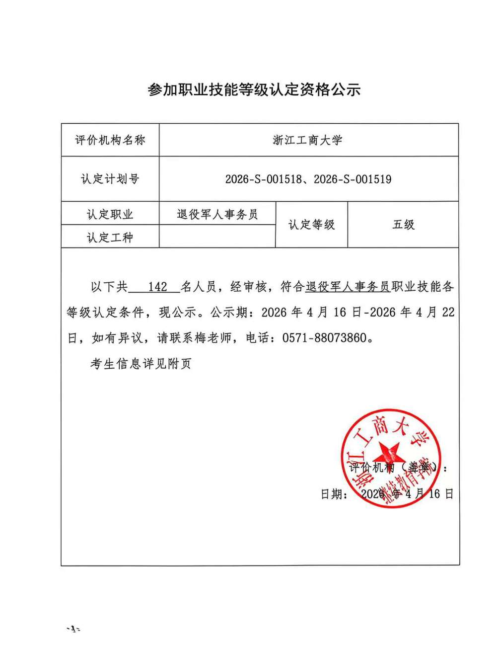 2026年4月浙江工商大学职业技能等级认定(磐安)、考生报名资格公示